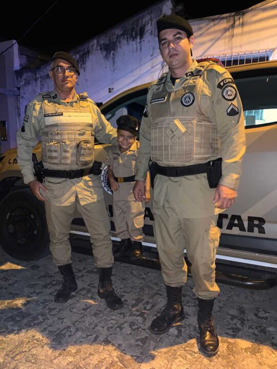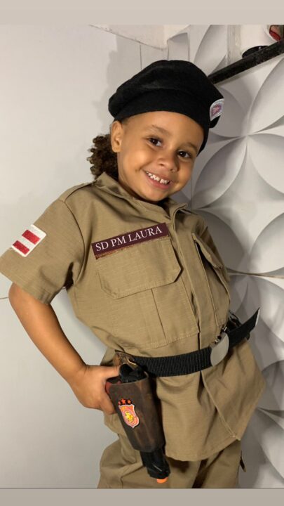 Além de marcar presença, os policiais registraram em fotos o momento com Laurinha, que, além dos agentes também estava caracterizada com uma farda da PM. Laurinha pousou para as fotos com muita alegria e vibrou com a visita dos PMs.