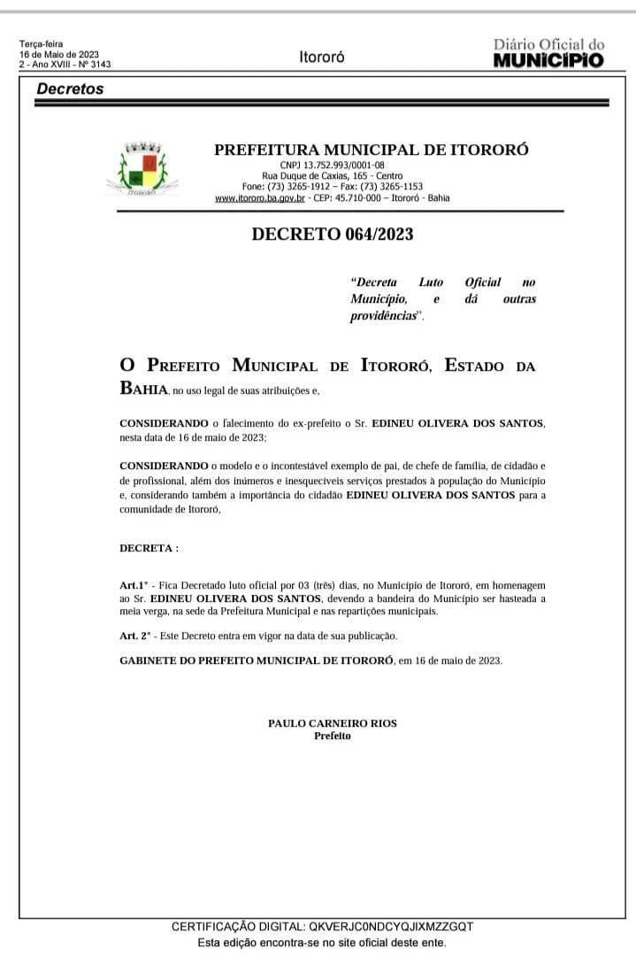Luto em Itororó: Morre o comerciante “Gil da Churrascaria” aos 75 anos
