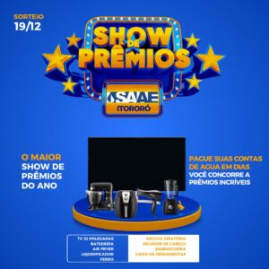 Itororó: SAAE fará sorteio de Show de Prêmios para clientes com contas em dias